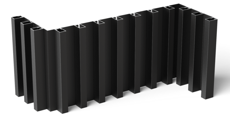 Alinel offers 6 different standard types. Each type consists of a series of profiles that can be combined according to taste to create a unique whole. Thanks to the patented tooth-hook system, the aluminium profiles can be assembled quickly and flexibly.